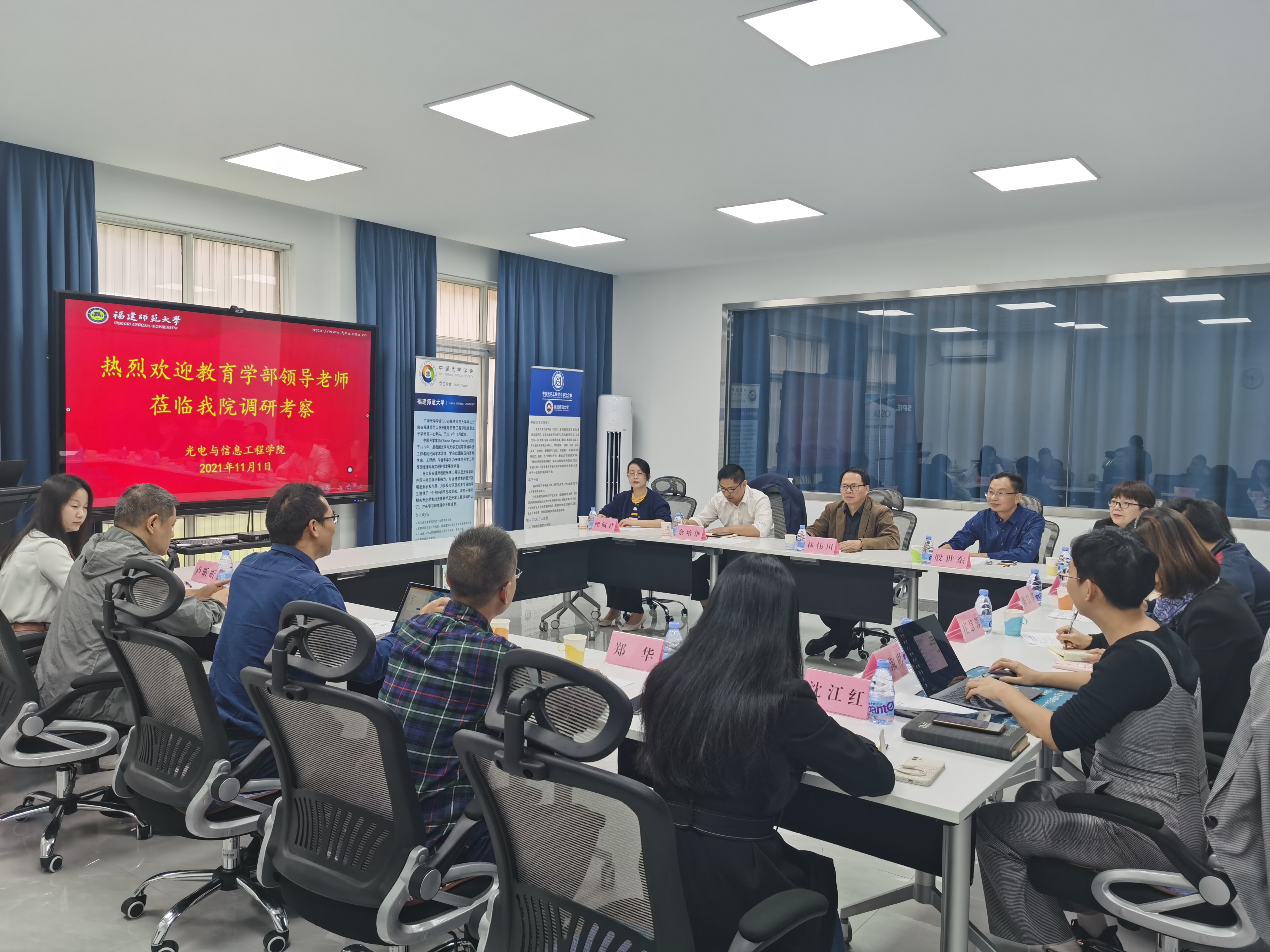 11月1日下午,教育学部副部长、教育学院林伟川院长,教育学部余培雄副部长、教育学院殷世东副院长,学前教育系主任吴荔红教授、学前教育副系主任缪佩君、教育学部三科科长陈信钢、国际处庄慧蓉科长等一行莅临光电与信息工程学院院就中外合作办学工作开展交流调研。主持工作副院长张先增教授,院务委员黄晞副教授、中英班负责人郑华副教授、学院办公室及教学与科研办公室负责人参加了座谈会。
